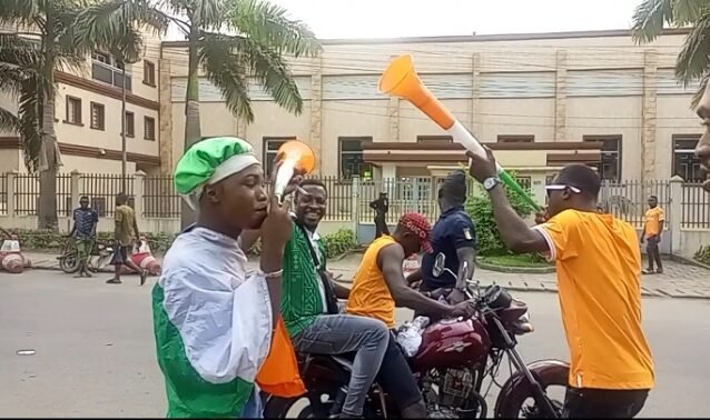 About noon on that match day, Ivorian fans draped in their national colours were trooping to the stadium amidst singing and blaring of their popular vuvuzelas.