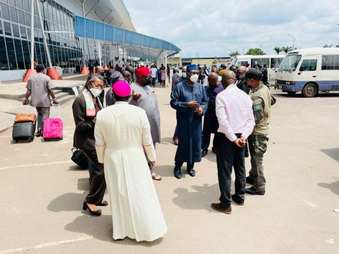 Bishop Hassan Kukah, one of the conveners of the National Peace Committee was also on the same flight.