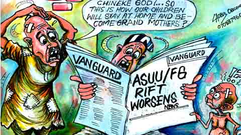 “The government through the National University Commission, NUC, through the Executive Secretary Prof. Julius Okojie, has once again shown its disdain for seriousness by pretending that it does not know that ASUU is on strike, publishing certain figures on academic staff salaries and funds released to universities and also conducting a sham programme accreditation at the University of Abuja.”